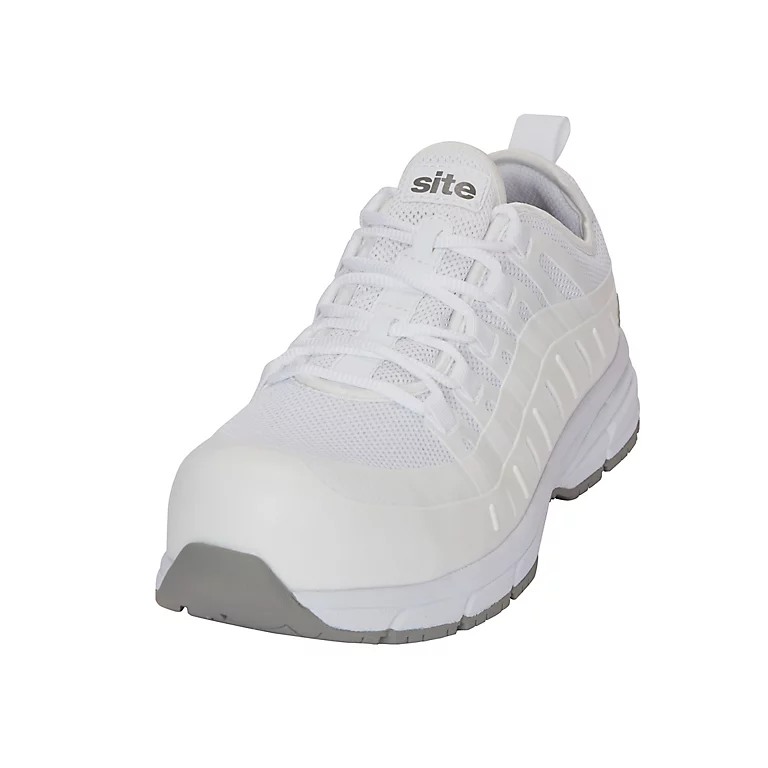 Baskets de sécurité blanches avec tige sport sans coutures visibles. Chaussures de classe S1P, avec coque et semelle intermédiaire en composite pour plus de confort et de sécurité. La tige en matière synthétique et maille sans coutures visibles permet à vos pieds de respirer et de bénéficier d’une grande liberté de mouvement.